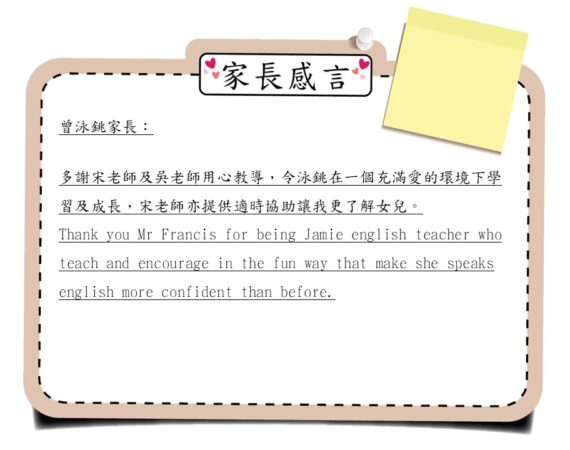 黃千堤家長感言