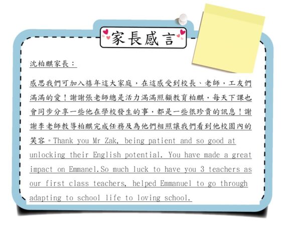 沈柏麟家長感言