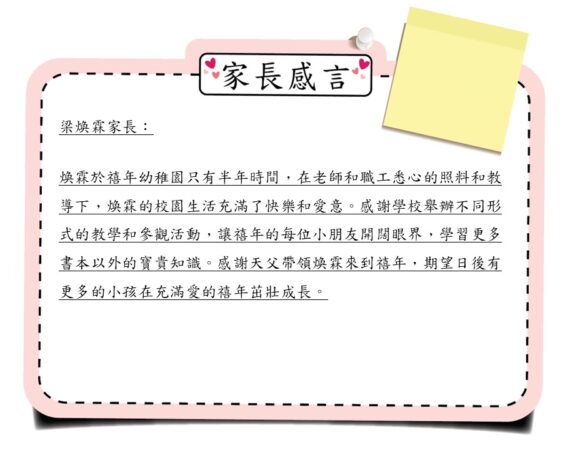 梁煥霖家長感言