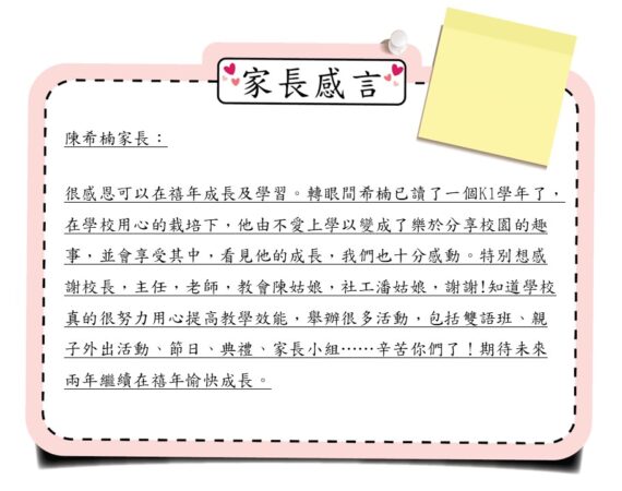 陳希楠家長感言